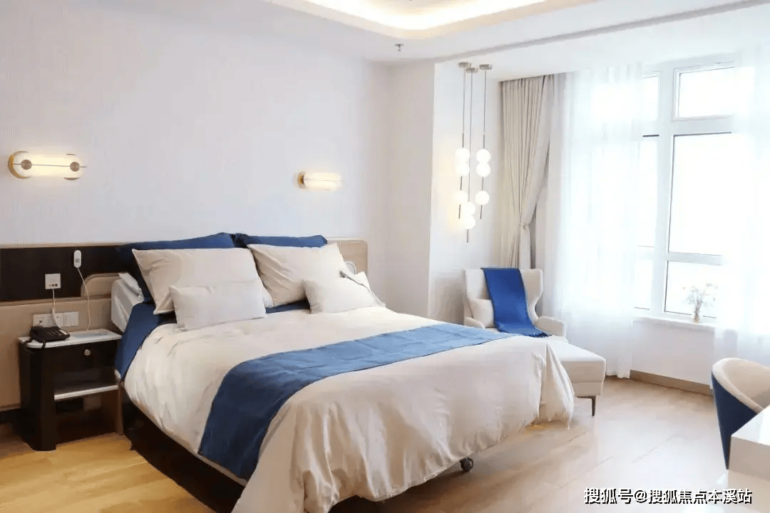 中心以“适老化+国际化审美”为设计理念,总建筑面积约2万平方米,核定床位382张,整体采用法式采光设计,全屋无高差布局,轮椅可360°回转,细节处尽显人性化关怀。居住空间提供单人间、双人间及VIP套房三种房型,均采用酒店式装修标准:单人间(30-40㎡)配备进口可调节护理床、智能马桶、毫米波雷达跌倒监测仪,独立阳台可俯瞰顾村公园樱花林;双人间(25-35㎡)设电动护理床、紧急呼叫按钮及隐私隔断,适合互助养老;VIP套间(60-80㎡)增设独立客厅、按摩浴缸、私人花园,提供私密管家服务。所有房间均配备记忆棉床垫、恒温花洒、防滑地砖、起身扶手及紧急呼叫按钮,按下后3分钟内护理人员即可抵达;同时配备智能监测设备与智能温控、空气净化系统,家属可通过手机APP查看长辈居住动态,安心更放心。
