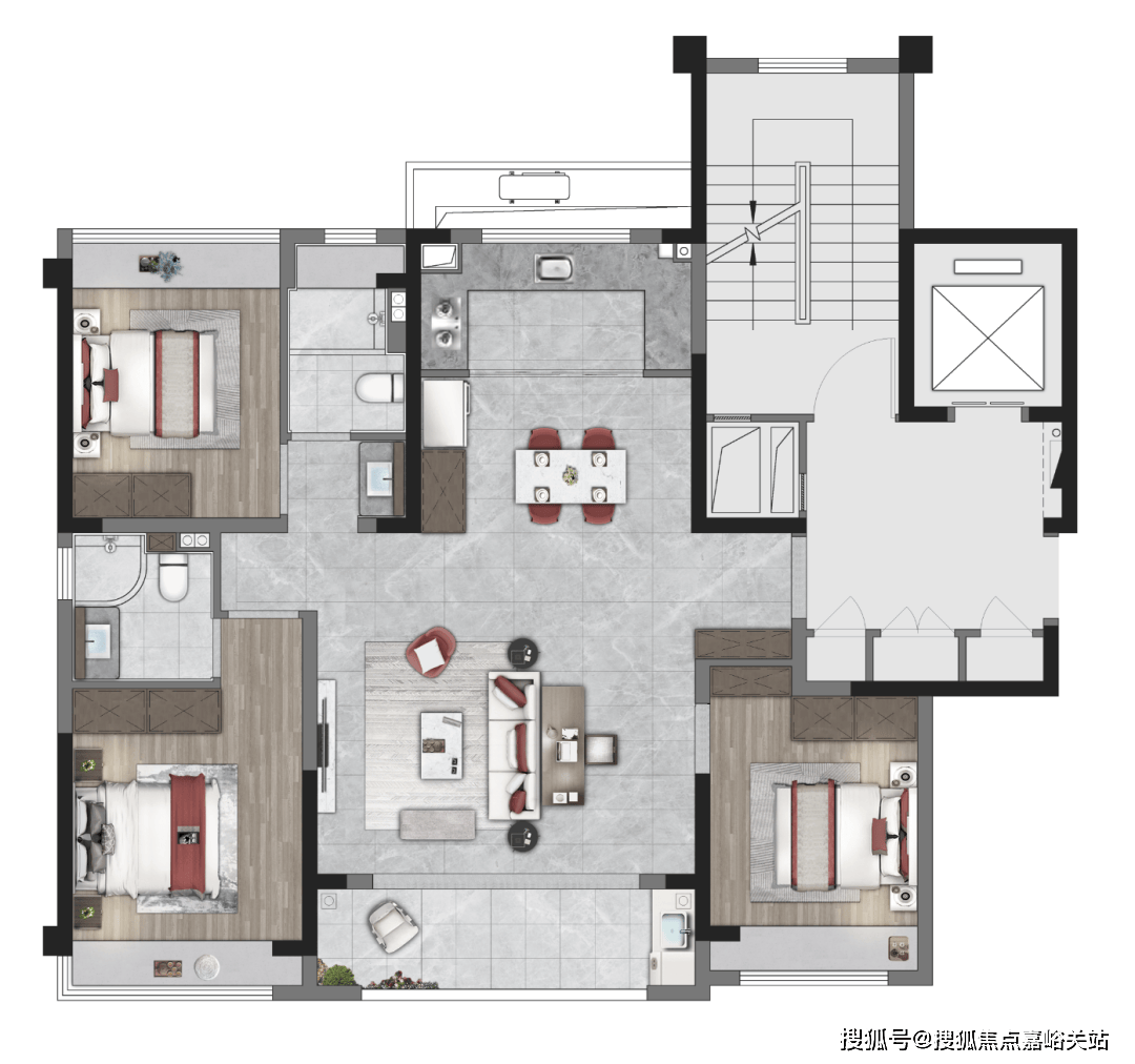 三大件同样甄选高端品牌,日立/东芝中央空调(或同档次品牌)、AO史密斯/阿里斯顿地暖(或同档次品牌)及美的/格兰斯柯新风系统(或同档次品牌)。