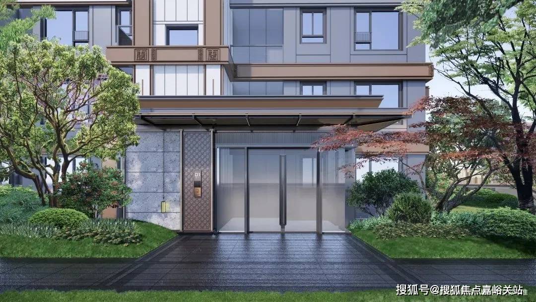 项目建筑外立面主色调为香槟金色与灰色相结合,单元入口部位使用蓝眼睛石材及香槟金色金属;更独特的是,项目将东方飞檐元素融入现代美学立面,形成不落俗套,气质清闲,典雅高贵的现代建筑形象,截取现代潮流元素的同时,亦不失东方大气恢弘之势。