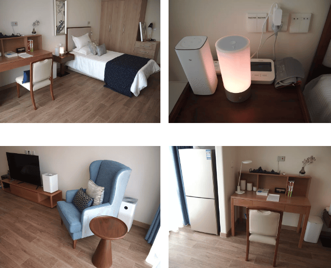 恒煦满园持续照料长者社区配备全套IoT智能家居设备,构建数字化安全防控、多维度环境舒适度控制、防走失定位报警、智能化康养及医养服务等多个系统,室内、公共区域均配有紧急呼叫系统与智能一卡通(集门禁、消费、缴费于一体)。