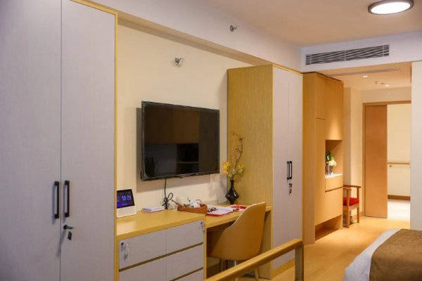 房间配备独立电视、独立冰箱、进口platz双马达电动护理床(配备床栏)、紧急呼叫系统、24小时热水,特别配备微子空调——无风无声、避免直吹,四季保持18-22度恒温,采用微子传导方式均衡室内温度,适配长辈敏感体质,居住更舒适。