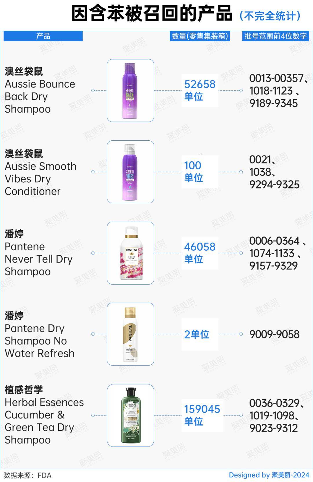 还有今年5月,宝洁旗下22款洗护产品因含苯(注:化妆品禁用成分)被召回,其中包括澳丝袋鼠、潘婷等多款美发产品。