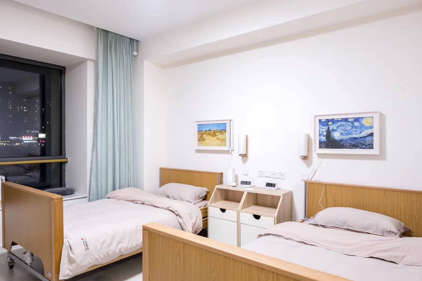 居住舒适度与安全性。每一个房间内都配备了独立卫生间,卫生间做了全面的适老化改造,地面防滑、墙面扶手、马桶扶手等设施一应俱全,方便长者起身与活动;房间内配备了24小时呼叫系统,呼叫按钮安装在床头、卫生间等关键位置,长者有需求时可随时呼叫护理人员;同时,房间内还配备了电视机、冰箱、电话、台灯、床头灯等设施,电视机可供长者观看节目,丰富业余生活;冰箱方便长者存放水果、药品等物品;电话方便长者与家属、护理人员联系;台灯与床头灯为长者提供充足的照明,方便长者夜间起身、阅读,避免意外发生。