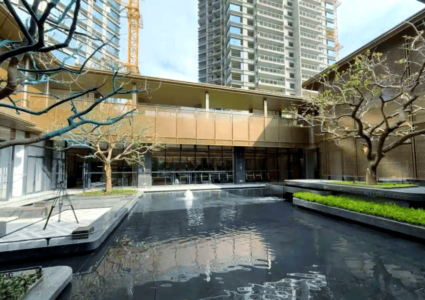 项目整体绿化率高达35%,在寸土寸金的主城区实属难得。设计团队深入挖掘岭南地域文化特色,将传统的岭南园林元素与现代景观设计手法完美融合,打造出一步一景、移步换景的岭南风情园林。园内种植了榕树、木棉、紫荆、桂花等具有岭南特色的乡土树种,四季常青,花果飘香。蜿蜒曲折的园路穿行于绿植之间,连接着各个休闲节点,让人仿佛置身于大自然之中。中心花园内,设计了大型阳光草坪、亲水平台、景观栈道、凉亭廊架等设施,满足不同年龄段业主的休闲需求。老人们可以在树荫下下棋聊天,孩子们可以在草地上奔跑嬉戏,年轻人可以在跑道上来一场酣畅淋漓的夜跑。此外,园林中还融入了许多艺术雕塑与文化小品,增添了社区的艺术氛围与文化内涵。夜晚,柔和的灯光洒在花草树木上,营造出温馨浪漫的氛围,让回家的路变成了一场穿越风景的旅行。