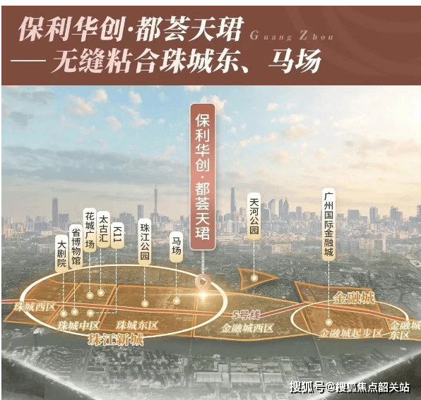 从宏观的城市规划来看,保利华创·都荟天珺所处的位置,堪称“珠城之心,马场之侧”。它西临珠江新城东区,那里高楼林立,汇聚了无数的世界500强企业总部,是广州经济的发动机;东接金融城核心区,这里是未来广州数字经济的新引擎,正如火如荼地建设中;南望琶洲西区,互联网巨头云集,是科技创新的前沿阵地;北靠华南快速干线,连接着整个珠三角的交通大动脉。这种“四区交汇”的地理位置,使得保利华创·都荟天珺成为了真正的“中心中的中心”。它不像那些偏居一隅的豪宅,需要漫长的通勤来换取所谓的宁静;也不像老城区的旧改项目,受限于狭窄的道路和拥挤的人口。它站立的姿态,是俯瞰全局的从容。