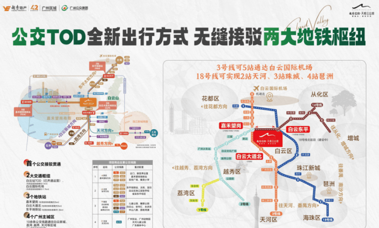 **交通网络**:广州首个公交TOD项目,四大地铁线环绕,四横四纵路网覆盖,下楼即达公交总站,15分钟畅达主城,出行便捷高效。