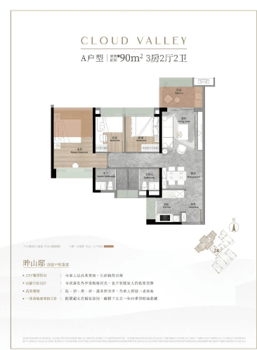 **生态环境**:主城稀缺白云山景,社区整体抬高18米,云观景台俯瞰全景,低密高绿规划,内外双园环绕,静谧康养、宜居属性拉满。
