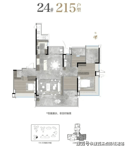 (5)24栋:总层高23层,仅规划两款户型,分别为西南向的约176㎡、东南向的约215㎡,两款户型均采用人性化设计,空间场景丰富,能够满足不同改善家庭的居住需求,是二期产品中的热门户型。