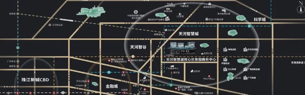 区位优势是楼盘价值的核心支撑,保利天汇的区位优势尤为突出,坐落于广州市天河区大观中路120号,地处天河智慧城板块-天河智谷片区,紧邻奥林匹克体育中心,地理位置得天独厚。天河智慧城作为广州“十四五”期间重点发展的板块,总面积约78.2平方公里,其中天河智谷片区面积约15.2平方公里,是粤港澳大湾区科技协同创新引领区,也是广深港、广珠澳科技创新走廊和广州科技创新轴的关键节点。园区拥有国家级高新区、省级高新区及国家软件产业基地等7个国家级创新发展平台,科研力量雄厚,培育出网易、佳都、南方测绘、极飞等一批龙头企业和独角兽企业,产业基础深厚。