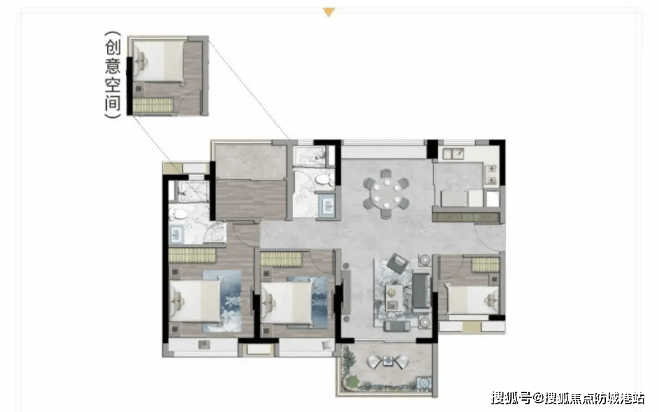 对于追求极致空间和品质的改善型客户,一百一十三平米和一百二十四平米的四房户型是终极选择,总价均为三百四十八万起。一百一十三平米的四房两厅两卫户型为南北对流单边位,双向采光,户型方正。四开间布局适合二孩家庭或三代同住,每个房间都有良好的采光和通风。主卧套房配备独立卫浴与衣帽间,堪比酒店行政套房,极大提升了居住的奢华感。