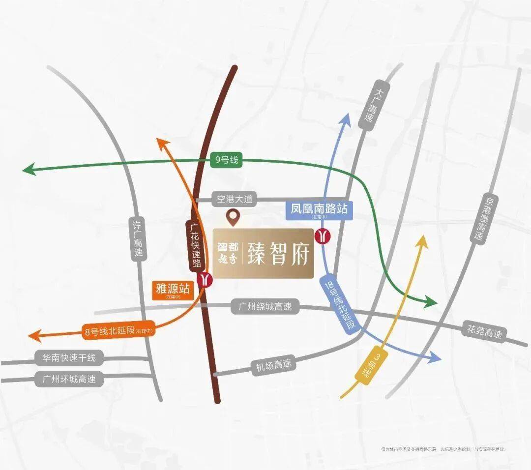 (展示中心官方认证|无中介|预约优先|24小时VR看房|实地看房预约|免现场等待|尊享一对一专属服务)在 “十五五” 规划的引领下,广花新城将迎来基础设施、产业升级、城市配套的全面提速。交通方面,将进一步完善空铁联运体系,加快推进地铁 8 号线 号线 号线等轨道交通建设,构建 “三纵三横” 的快速路网体系,实现与广州中心城区的无缝对接。产业方面,将以广花创新经济核心带为载体,串联广州北站枢纽、临空经济区、民营科技园等重要产业平台,重点发展新一代信息技术、高端装备制造、生物医药、现代物流等战略性新兴产业,吸引更多优质企业与高端人才集聚。目前,广花创新经济带已汇聚了王老吉、广铝集团、霸王集团、白云清洁、白云电器、欧派家居等一批知名企业,形成了产业集聚效应,为区域经济发展注入了强劲动力。城市配套方面,将加大教育、医疗、商业、文化等公共服务设施的投入力度,不断提升区域的城市功能与生活品质,打造宜居宜业宜游的现代化新城。智都越秀臻智府拥有极为便捷的交通网络,实现了地铁、自驾、公交的全方位覆盖,轻松畅享广州半小时生活圈。轨道交通方面,项目距离在建的地铁 8 号线北延段雅源站直线 米,步行即可到达,乘坐 8 号线 站直达广州北站,可快速换乘高铁、城际列车,通达全国。距离在建的地铁 18 号线北延段凤凰南路站直线 号线作为广州南北向的快速地铁干线 站即可到达广州东站,可快速换乘多条地铁线路,便捷通达珠江新城、琶洲、南沙等核心区域,并可连接湾区 5 城,实现湾区一小时生活圈。智都越秀臻智府是广花路上距离 18 号线凤凰南路站最近的住宅项目之一,尽享双地铁带来的出行便利与价值提升。