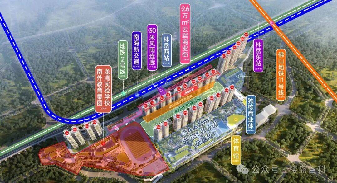 佛山地铁 2 号线林岳西站上盖,下楼步行即达地铁站,真正实现 “地铁就在家门口”。