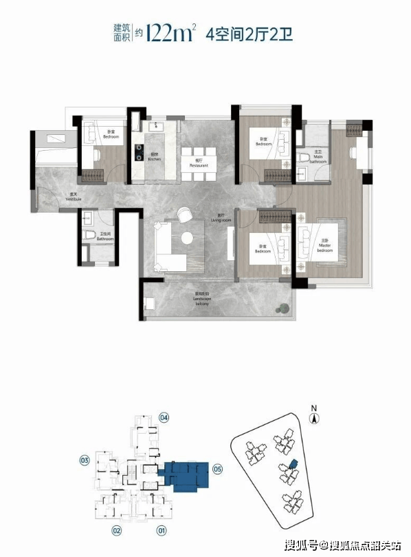 建面约122平方米的四房两厅两卫,作为改善型户型,拥有约6.8米长的南向阳台,主卧配备步入式衣帽间,空间开阔舒适。这种大尺度的设计,满足了高品质居住的需求,让业主享受到别墅般的居住体验。