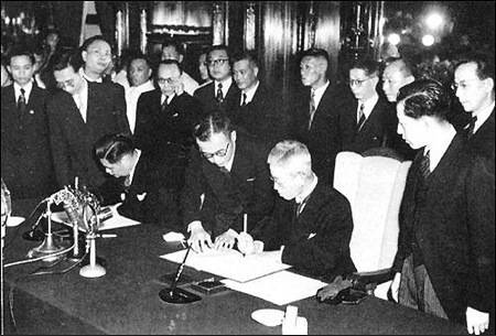 如此一来,在“无权代表中国行使国家主权”的蒋介石集团与日本国代表的和约下,中国对日抗战是从1941年12月9日蒋介石对日宣战才开始算数,总计不到4年,比美国人还少一天。