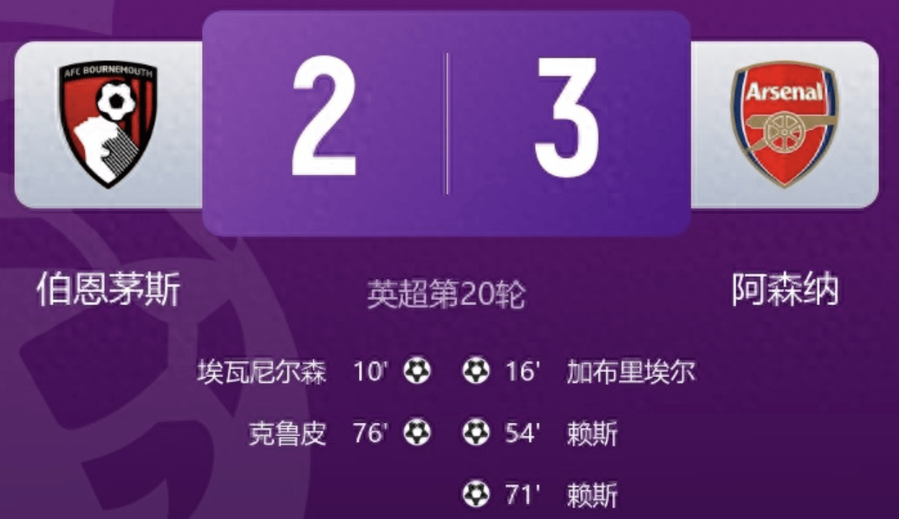 阿森纳想创造队史纪录,一个赛季拿到4个冠军,难度非常之大。无论英超还是欧冠,阿森纳都面临激烈竞争,此外国内2大杯赛,阿森纳同样会遇到诸多强敌。不过哪怕如此,阿森纳肯定不会轻易放弃任何一条战线日凌晨,阿森纳做客对阵伯恩茅斯,后者堪称阿森纳的苦主,上赛季他们主客场双杀了阿森纳,本场比赛差点又让阿森纳丢分。比赛开始不久,阿森纳就因为自己的失误,被对手先进1球。好在关键时刻,加里布埃尔进球,为阿森纳扳平比分。1-1之后,赖斯站出来接管比赛,他的2个精彩进球,让阿森纳在客场3-1领先,之后虽然主队追回1球,但是阿森纳依然3-2拿到了3分。