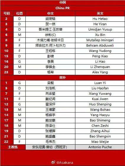 本场比赛,中国U23男足在首发阵容中更换了两名球员,木塔力甫和杨希替换了上一场首发的王博豪和鲍世蒙,其他位置球员不变。主教练安东尼奥继续排出532的防守反击阵型,以不变应万变。