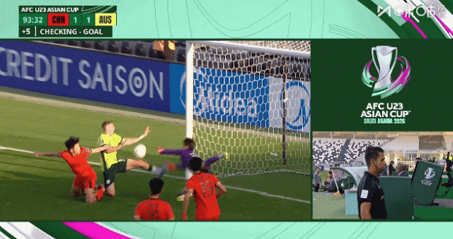 伤停补时第2分钟,澳大利亚替补球员博瓦利纳用手将球挡入U23国足球门,但VAR介入后,主裁判罚进球无效!