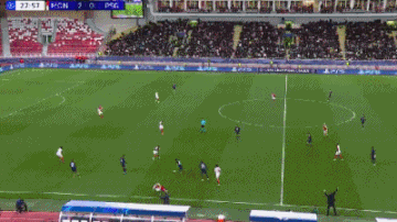 面对重重逆境,大巴黎开启逆袭。第29分钟,巴尔科拉送出直塞,替补登场的杜埃低射破门,巴黎扳回一球。