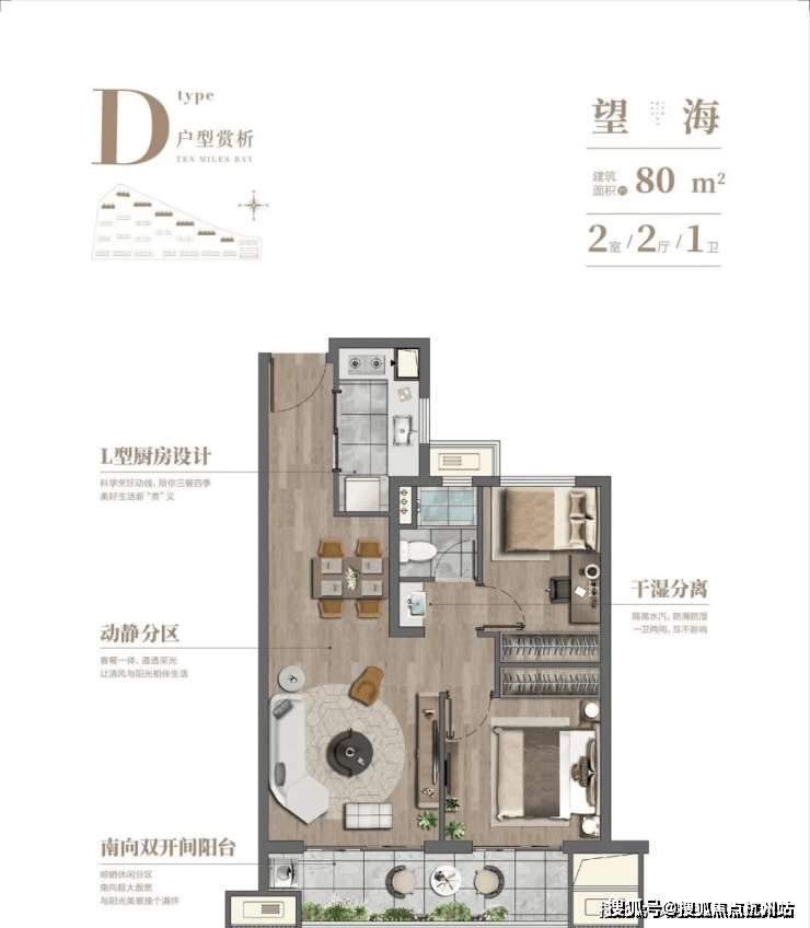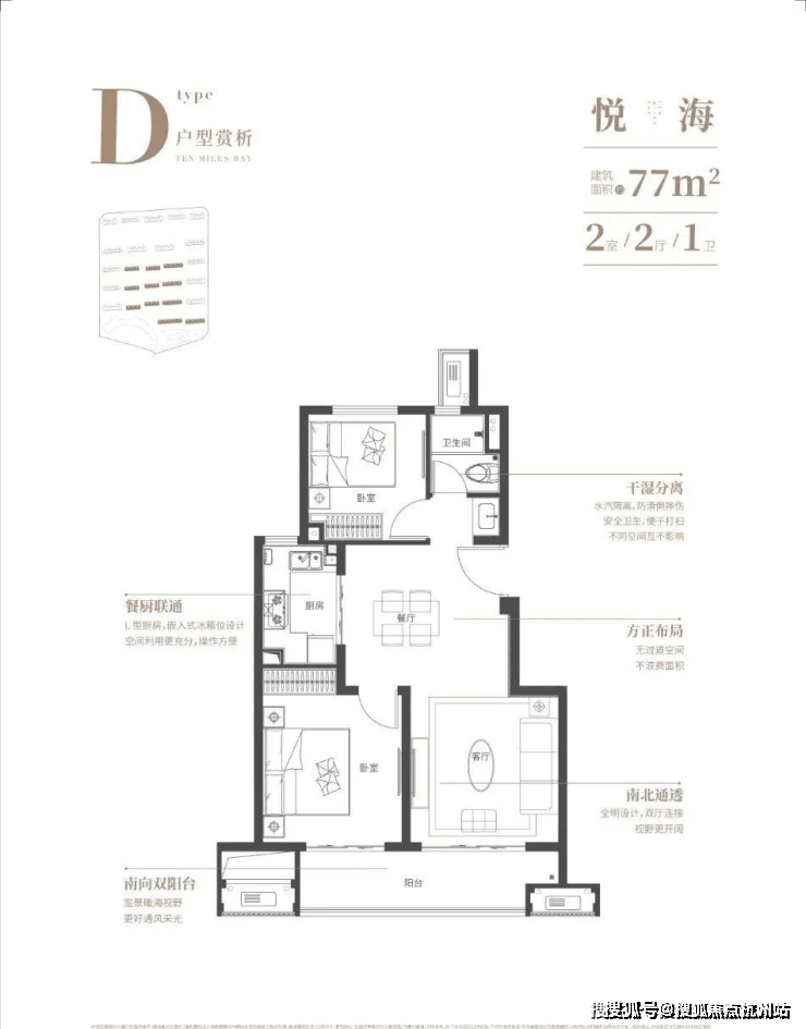 【高层80平】6.8m大面宽双阳台,180º东西向全景观海,户型方正,南北通透!
