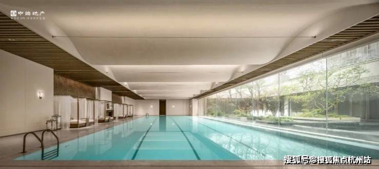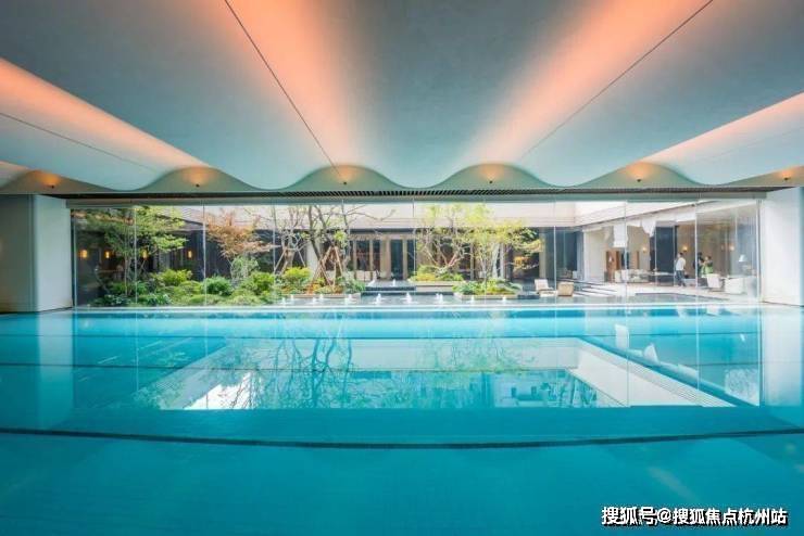 比起领邸,云邸玖章改为采用大尺度的落地玻璃拼接,且通过精致的玻璃交接细节处理增进室内外空间的融合,强调泳池的无界感,真正实现了无边泳池的效果。通透感、无界感相较徐汇滨江会所的泳池又有了质的飞跃。
